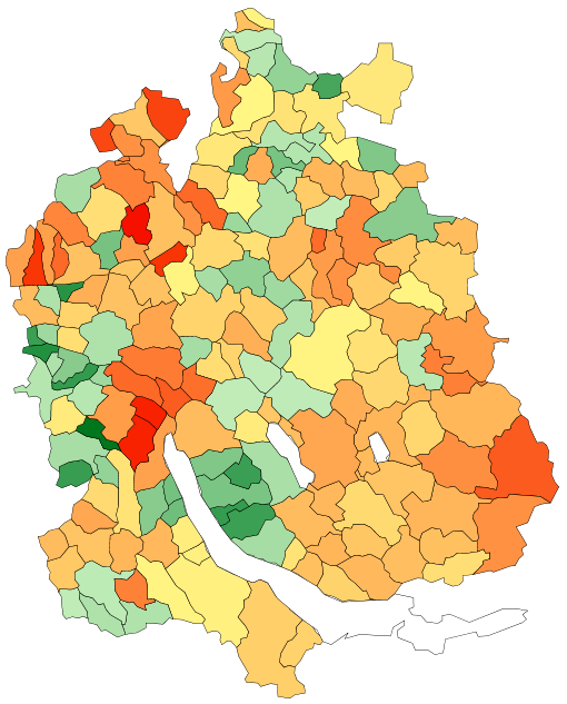 Si observamos más de cerca los resultados de esta votación cantonal (en la que ha participado el 40% del electorado), vemos que sólo un tercio de los municipios (55 de 162) ha votado a favor de la nueva ley, y que las dos grandes ciudades del cantón la han rechazado claramente en la totalidad de sus circunscripciones: Zúrich (400.000 habitantes, con el «no» del 57,2 %) y Winterthur (110.000 habitantes, con el voto negativo del 61,2 %). El rechazo más destacado ha sido el del municipio de Hochfelden (2.000 habitantes, con el «no» del 70 %) y la mayor aceptación se ha registrado en Uitikon (4.200 habitantes, con el voto afirmativo del 66 %).